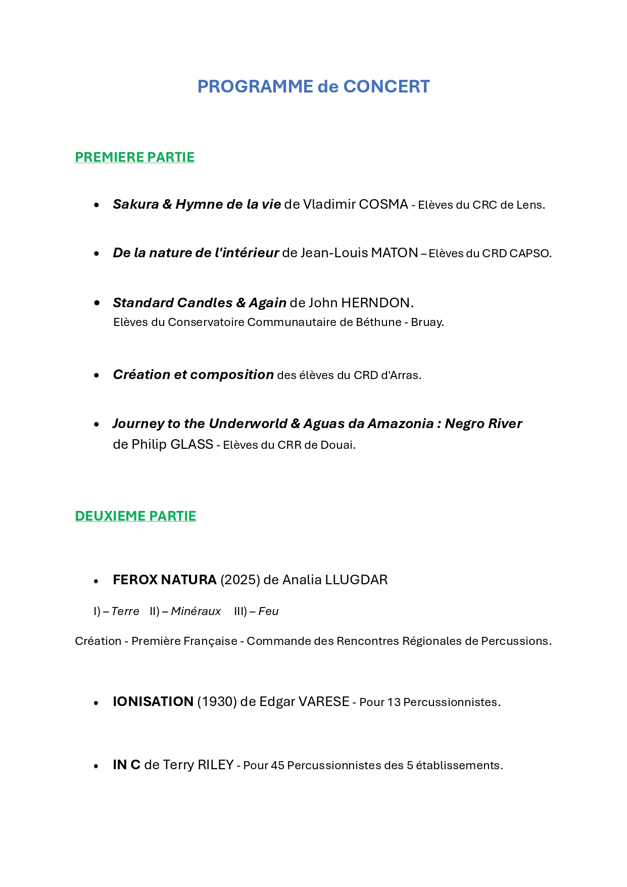 Concert des rencontres régionales de percussions avec la participation des élèves des conservatoires de la région.